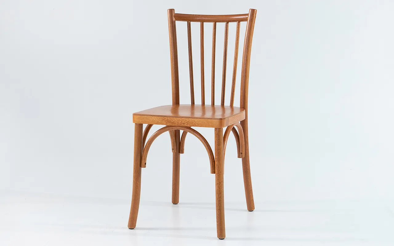 A Cadeira de Madeira Sophie também possui sapatas resistentes na parte de baixo dos quatro pés e suporta 150 kg de peso, é super resistente.