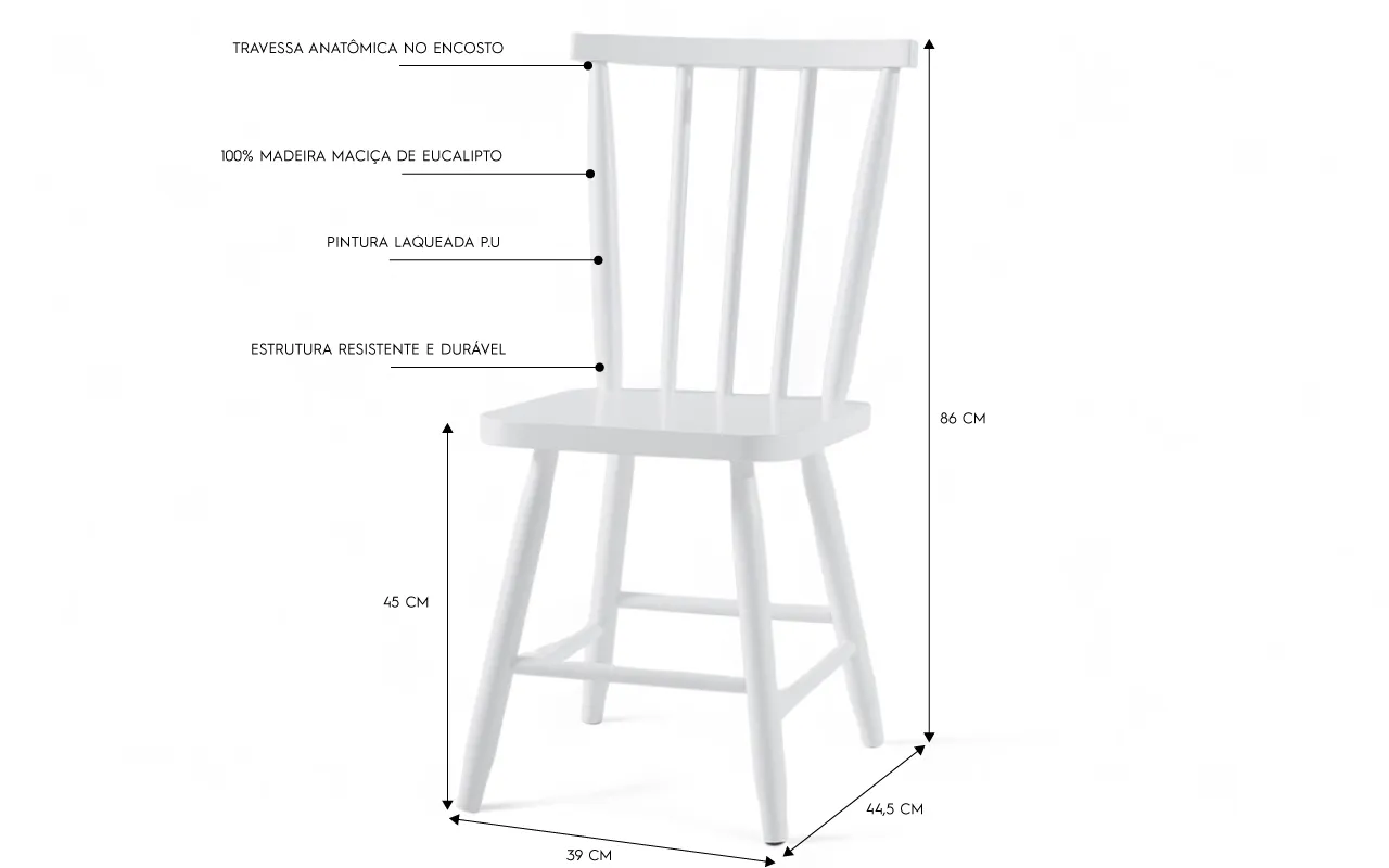 As medidas compactas desta cadeira torneada, permitem acomodar mais pessoas envolta da mesa, aproveitando melhor o espaço do seu ambiente!